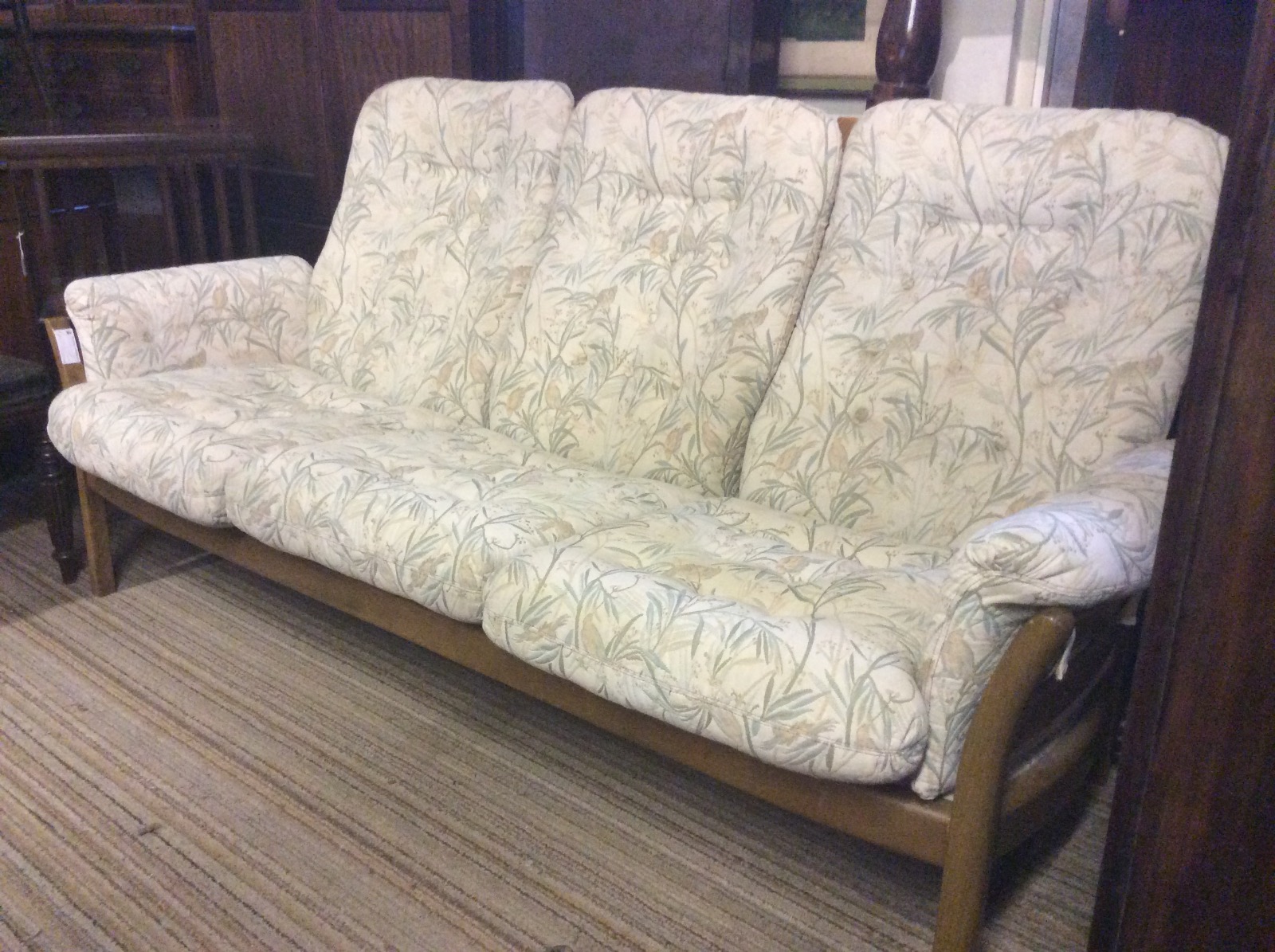 This is a very tidy 3 seater sofa with removable cushions in very good order. Please note this was purchased from a lady who said it was made by Ercol but I cannot find evidence of any stamp therefore sold as believed to be Ercol.