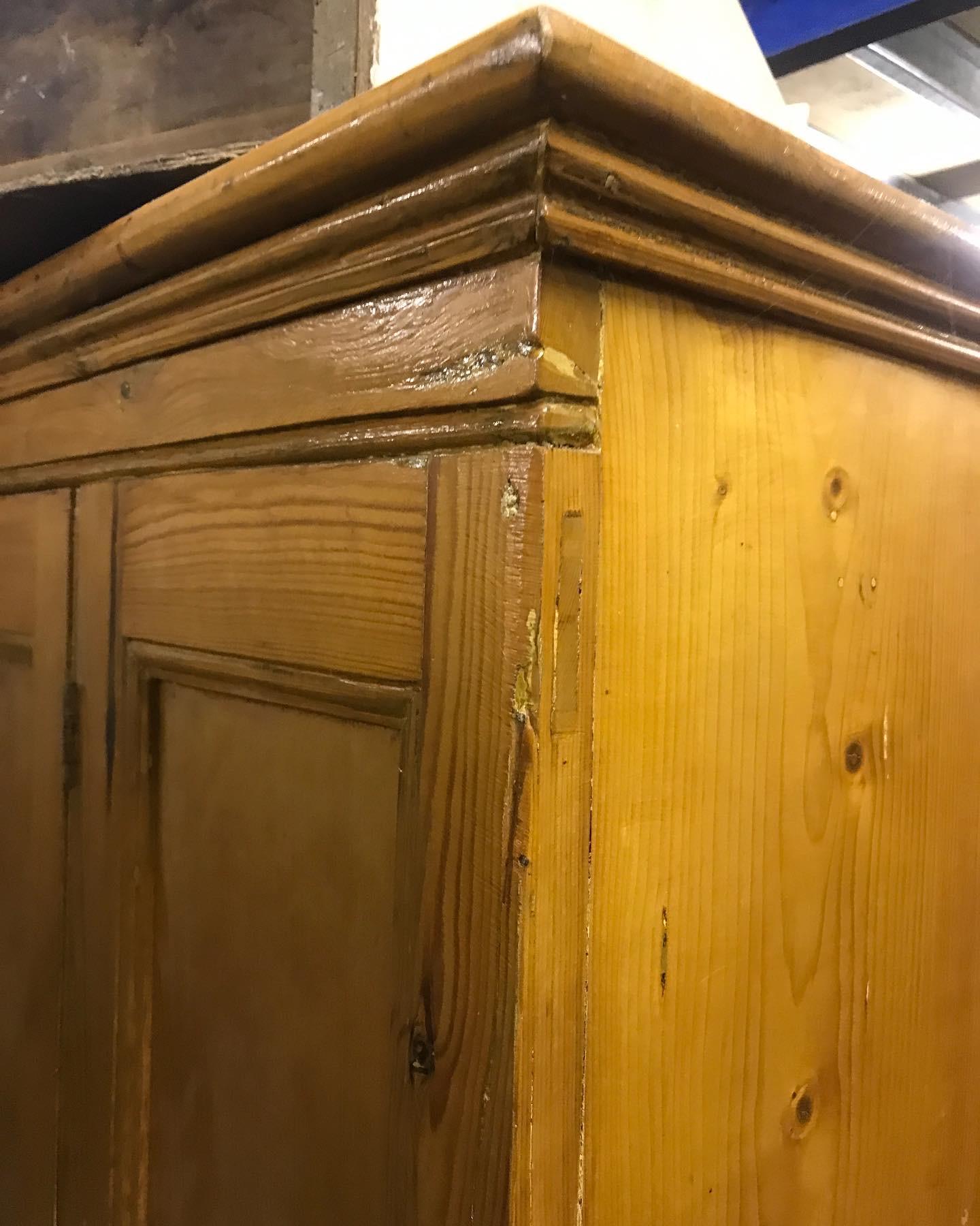 Good Antique panelled pine cupboard/wardrobe one piece multi panels and single door. Good depth for hanging clothes and in original condition with single shelf inside.