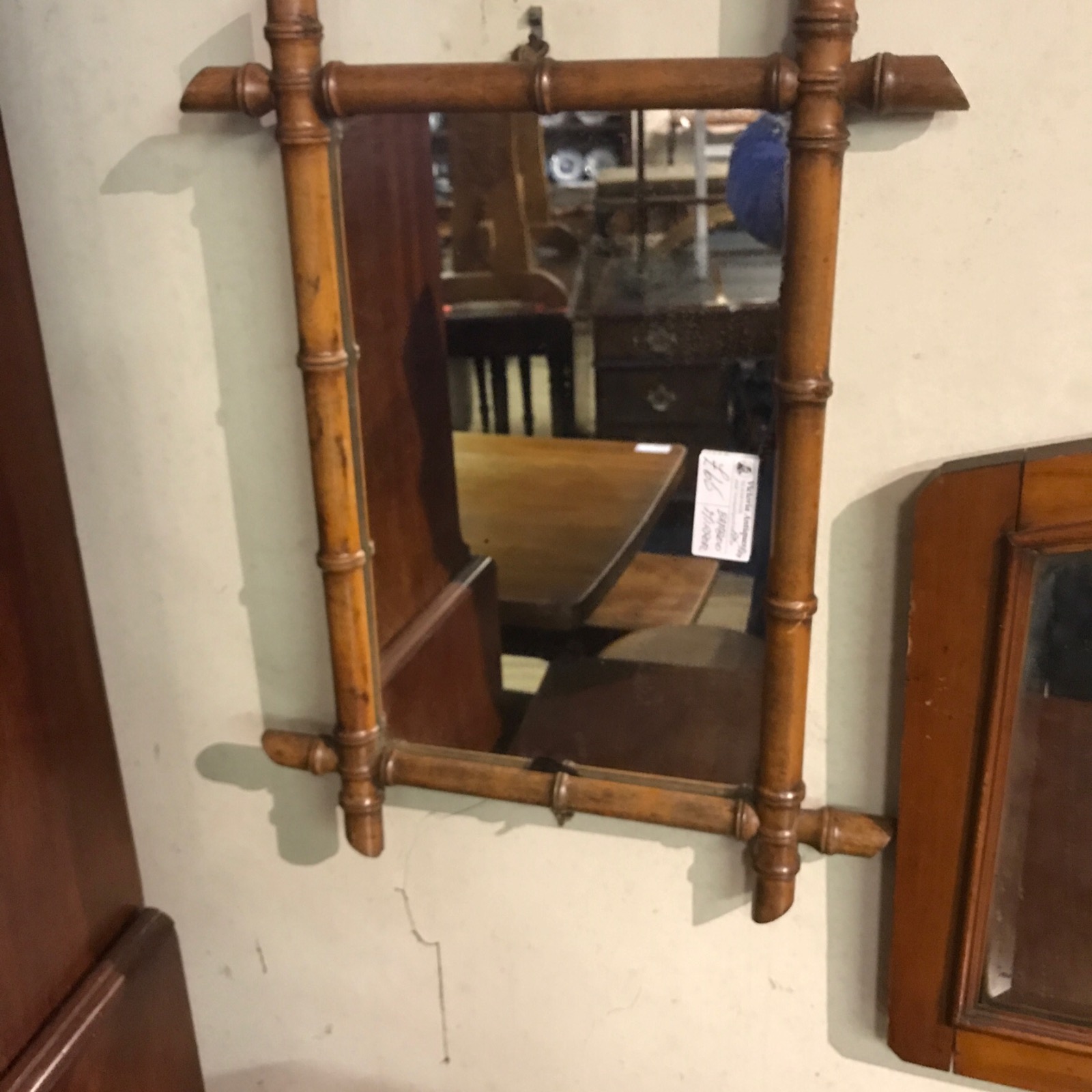Offered for sale is this original bamboo cross framed wall mirror.