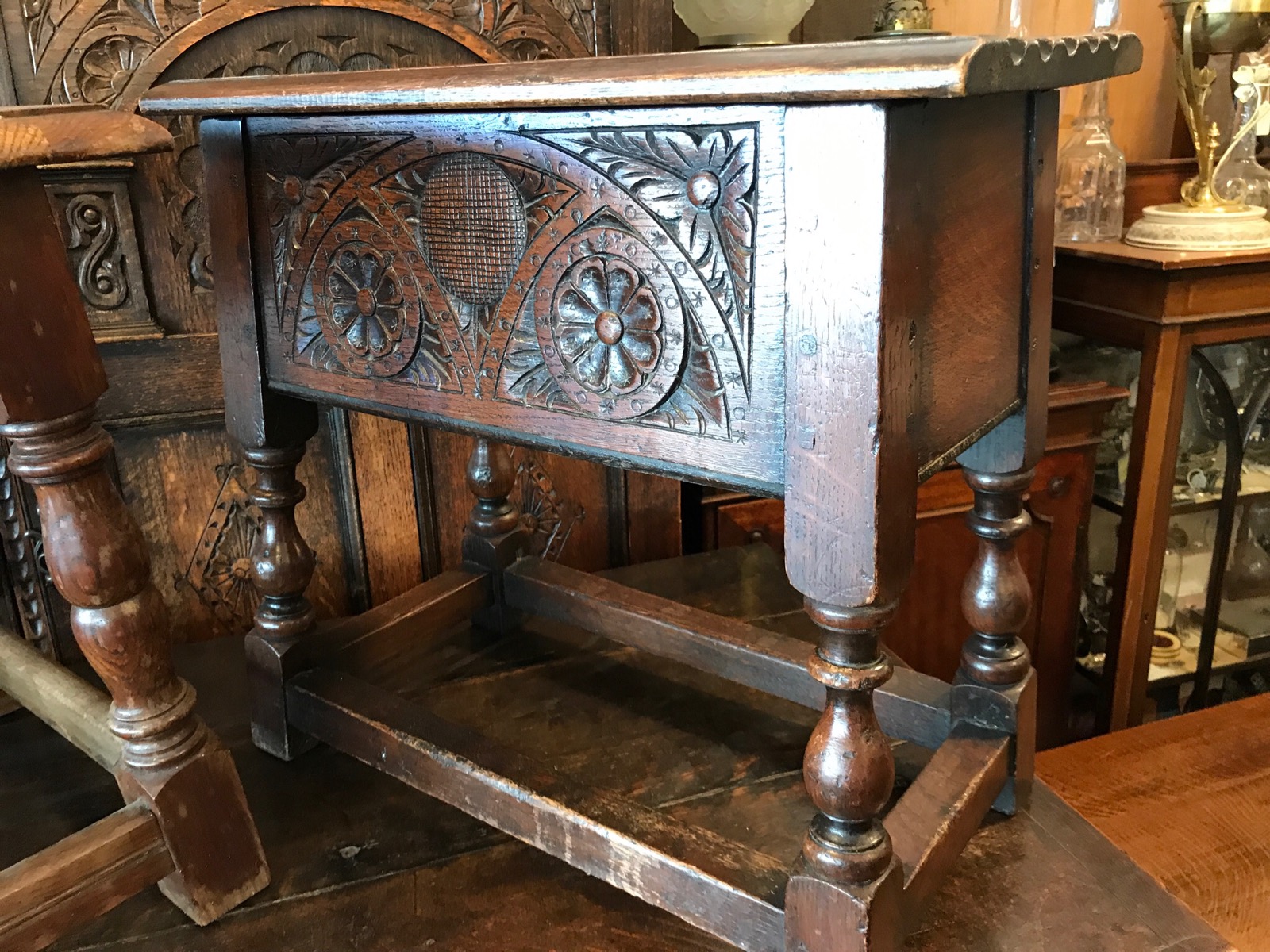 Offered for sale is this 20th Century nice quality carved oak box stool with hand made strap hinges