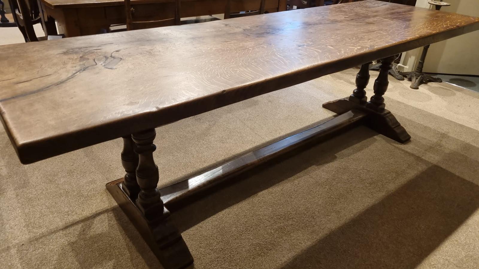 Very good quality oak refectory table top probably 17th century with a later Victorian base both excellent quality and very heavy. Originally from a old convent with a 2 inch plus thick top and being in one piece.
