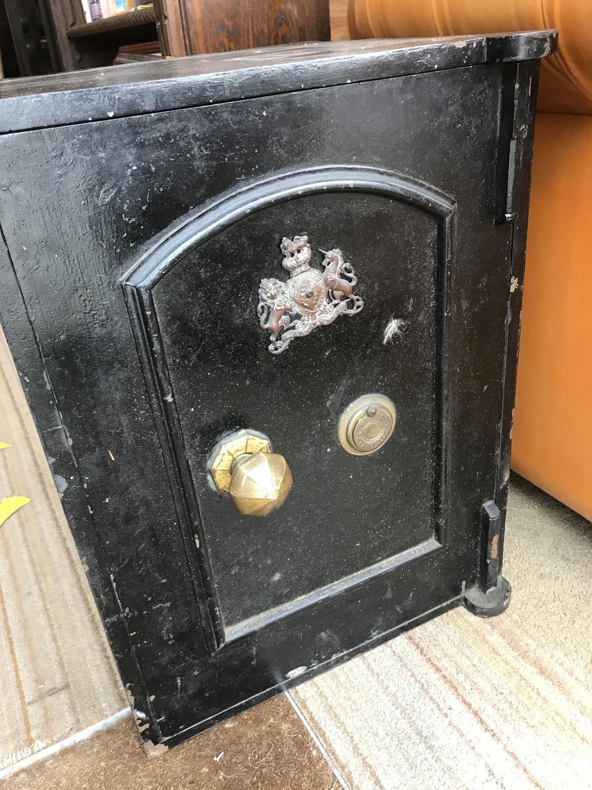 Good fire resistant metal safe in good working condition it has a extra cash draw inside at the bottom and it come complete with key. Which is very useful.