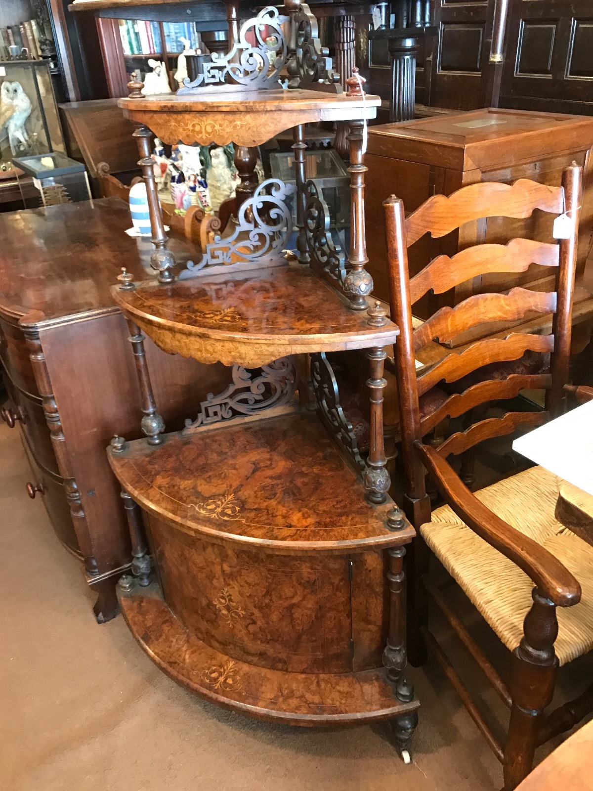 Inlaid Walnut Corner Whatnot c.1860