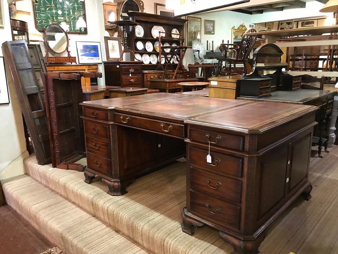 Large mahogany partners desk, with drawers a cupboards pedestals can be reversed so draws one side a cupboards the other. There are slides to to the front and rear as well as the sides. Solid mahogany and good quality .