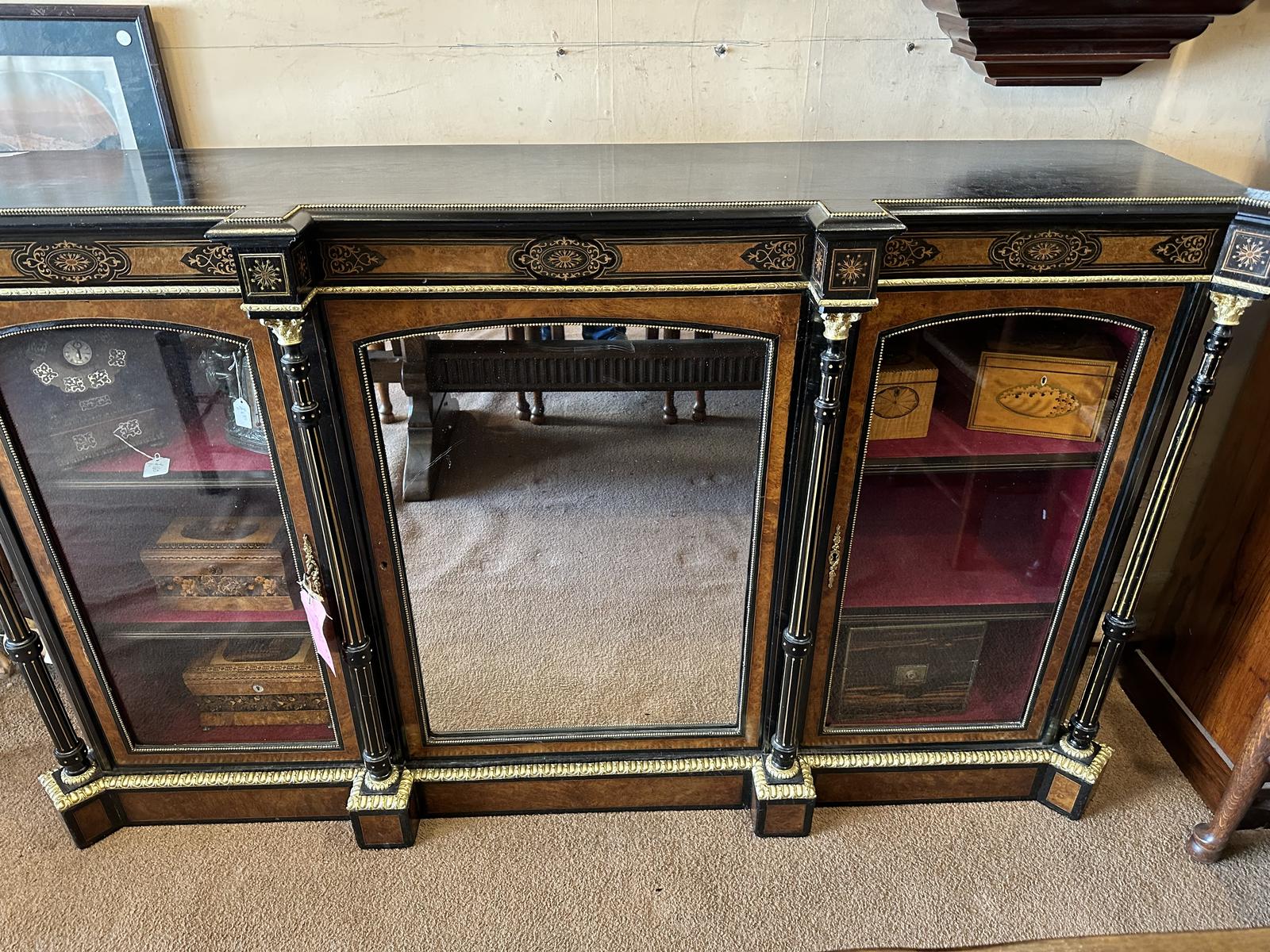 Lovely Quality Brass Mounted Ebonized Burr Walnut Credenza