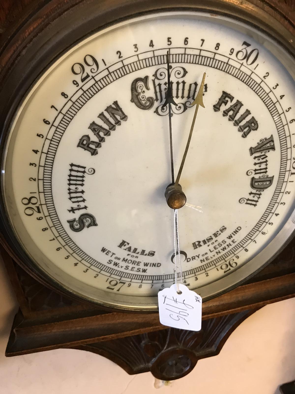 Offered for sale is this antique large impressive oak aneroid barometer with fluted pillars and having carving to the surroundings.