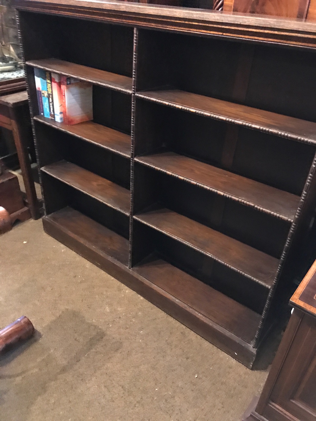 Offered for sale is this antique multi section solid oak open bookcase in good original condition