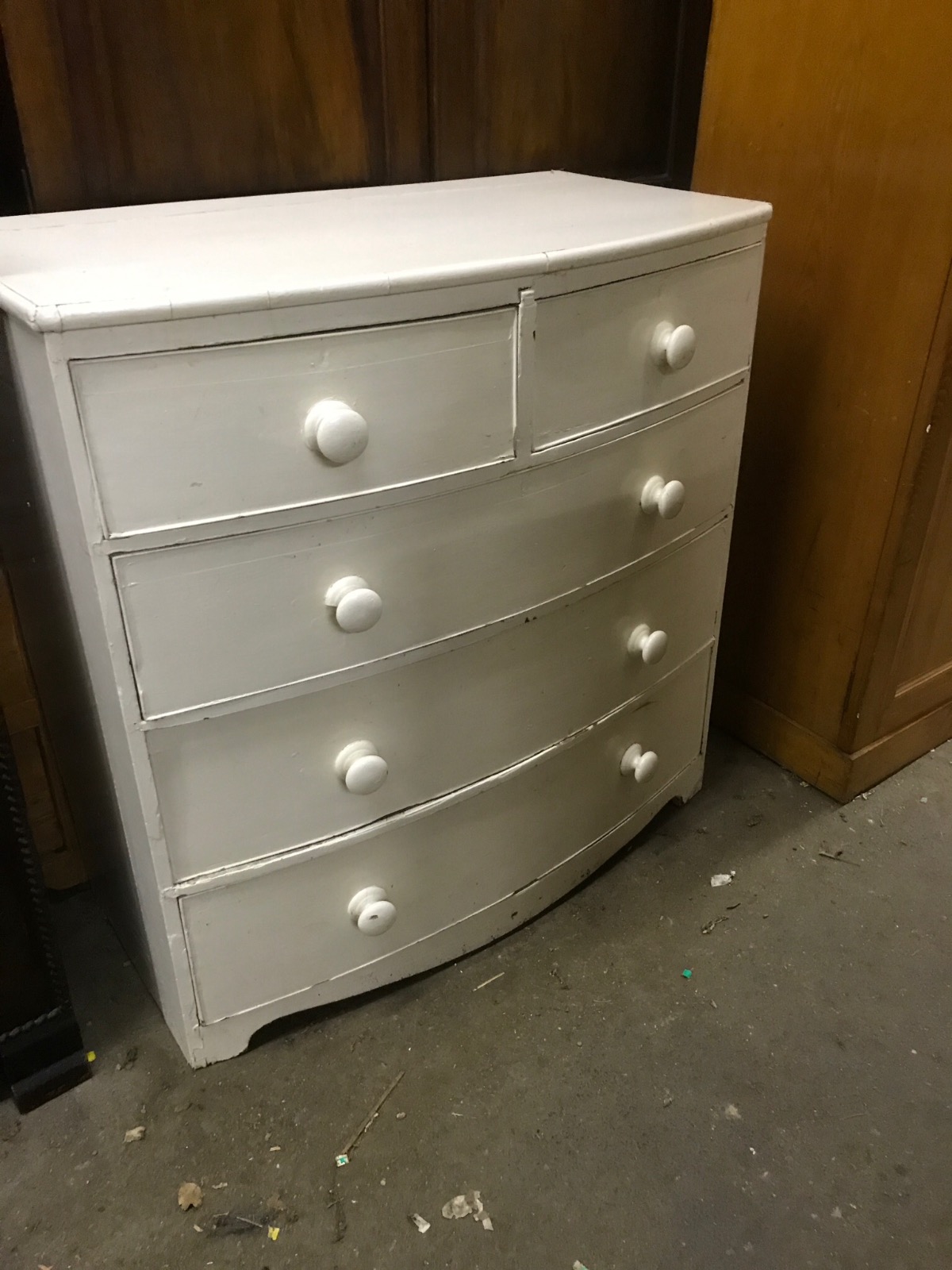 Original and unrestored painted Victorian bow front chest of draws sold unrestored and as found