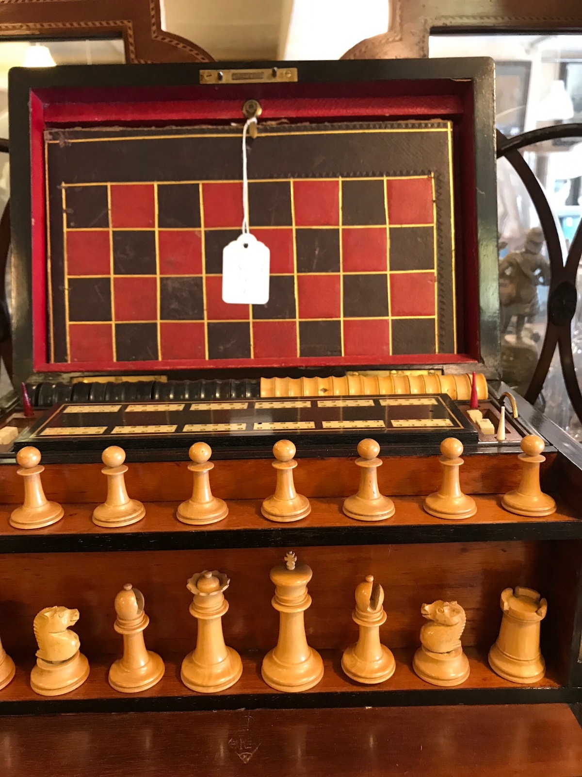 This is a fantastic quality 19th Century antique games compendium fitted with multi games in rosewood cabinet. You will struggle to find a nicer one.