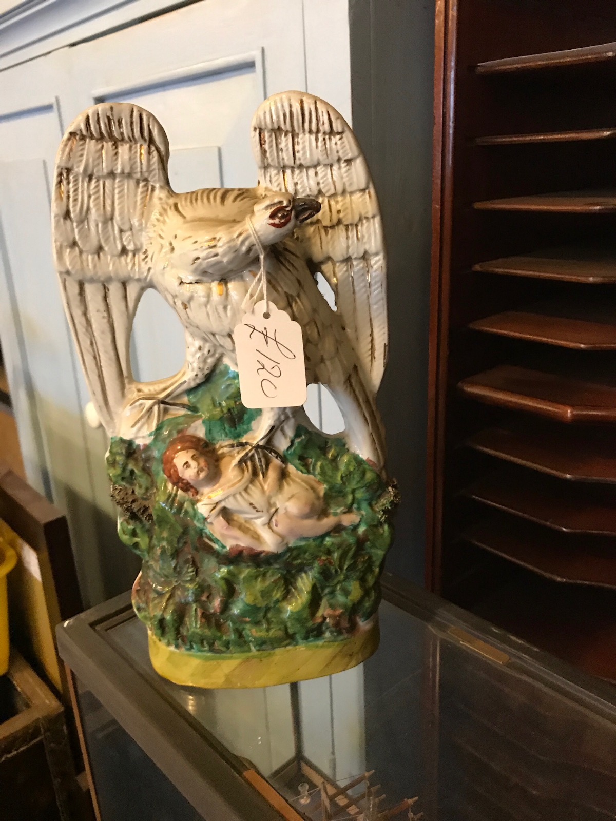 Offered for sale is this 19th Century Staffordshire antique figure of a large bird with figure in nest.