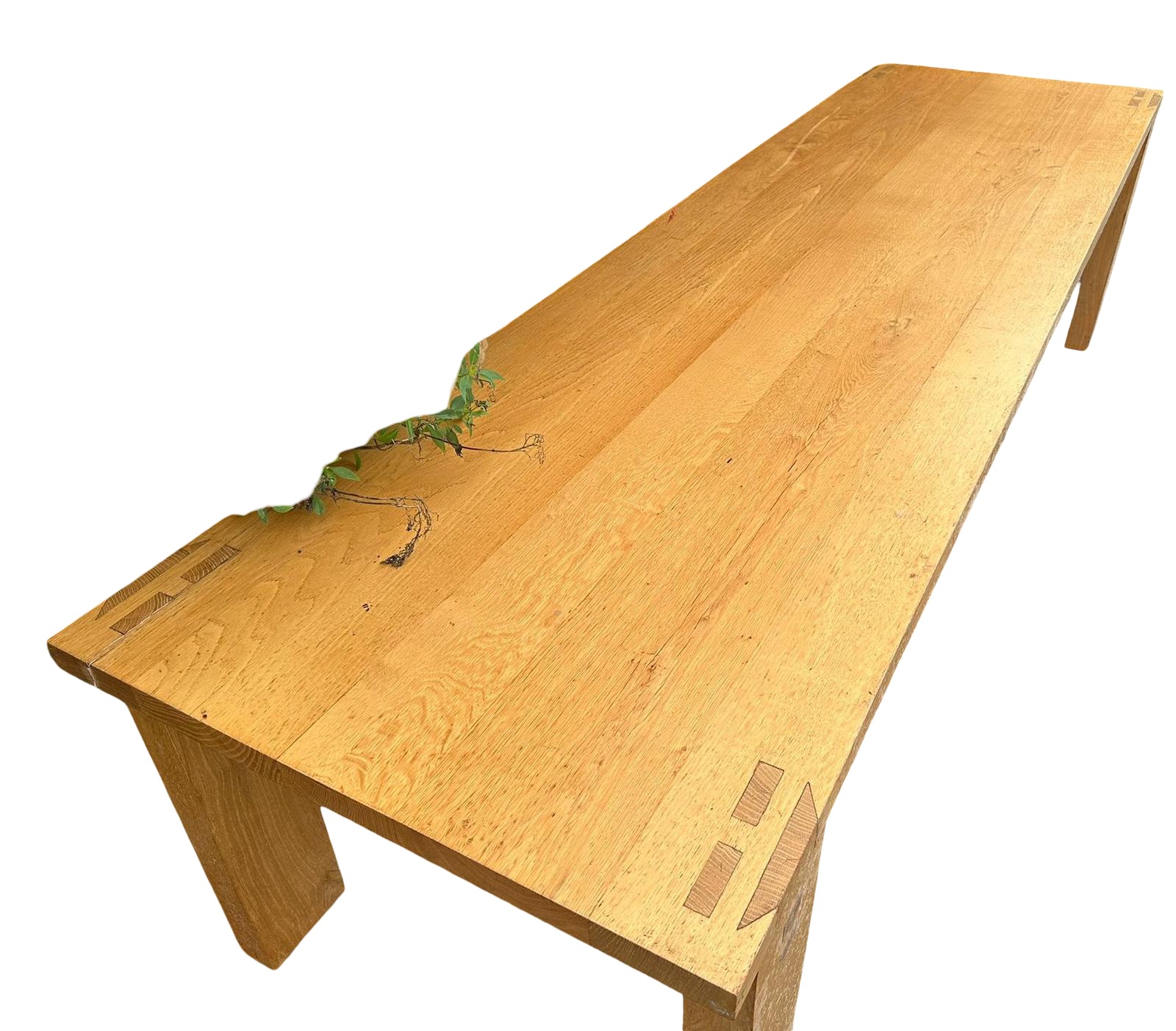 This is a stylish vintage modern oak refectory table from the 1970s. Constructed from oak, the table features a classic design typical of mid 20th-century British furniture. It is suitable for use as a dining or kitchen table and falls within the categories of furniture and dining furniture. The item reflects the design aesthetics of its era.