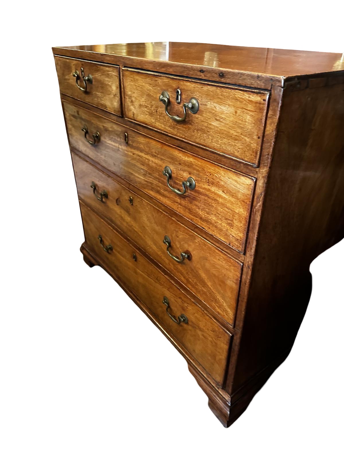 This is a Georgian chest of drawers, constructed from original mahogany, dating to approximately 1780. The piece features a traditional design with multiple drawers for storage, showcasing the craftsmanship typical of the period. It retains its original hardware and finish, reflective of its age and historical significance.