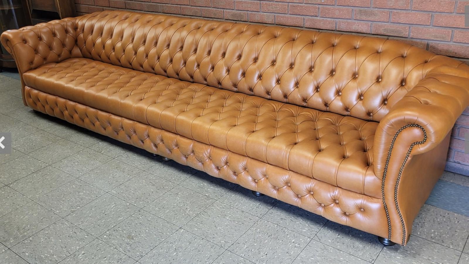 Superb Tan Leather Fully Buttoned Large Chesterfield Sofa