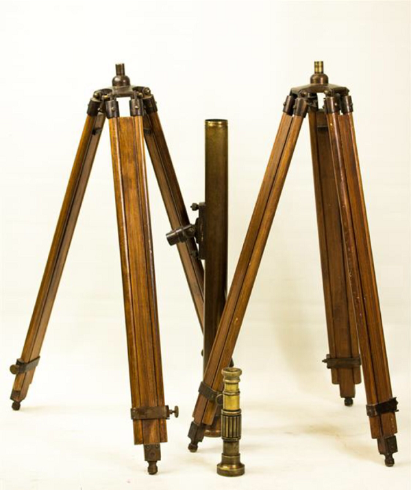 These are two word and brass telescope tripod stands with adjustable telescopic base price is for each.