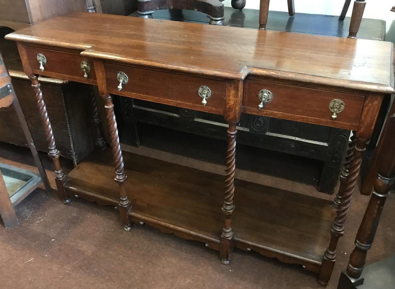 Unusual Break Front 3 Drawer Hall Table