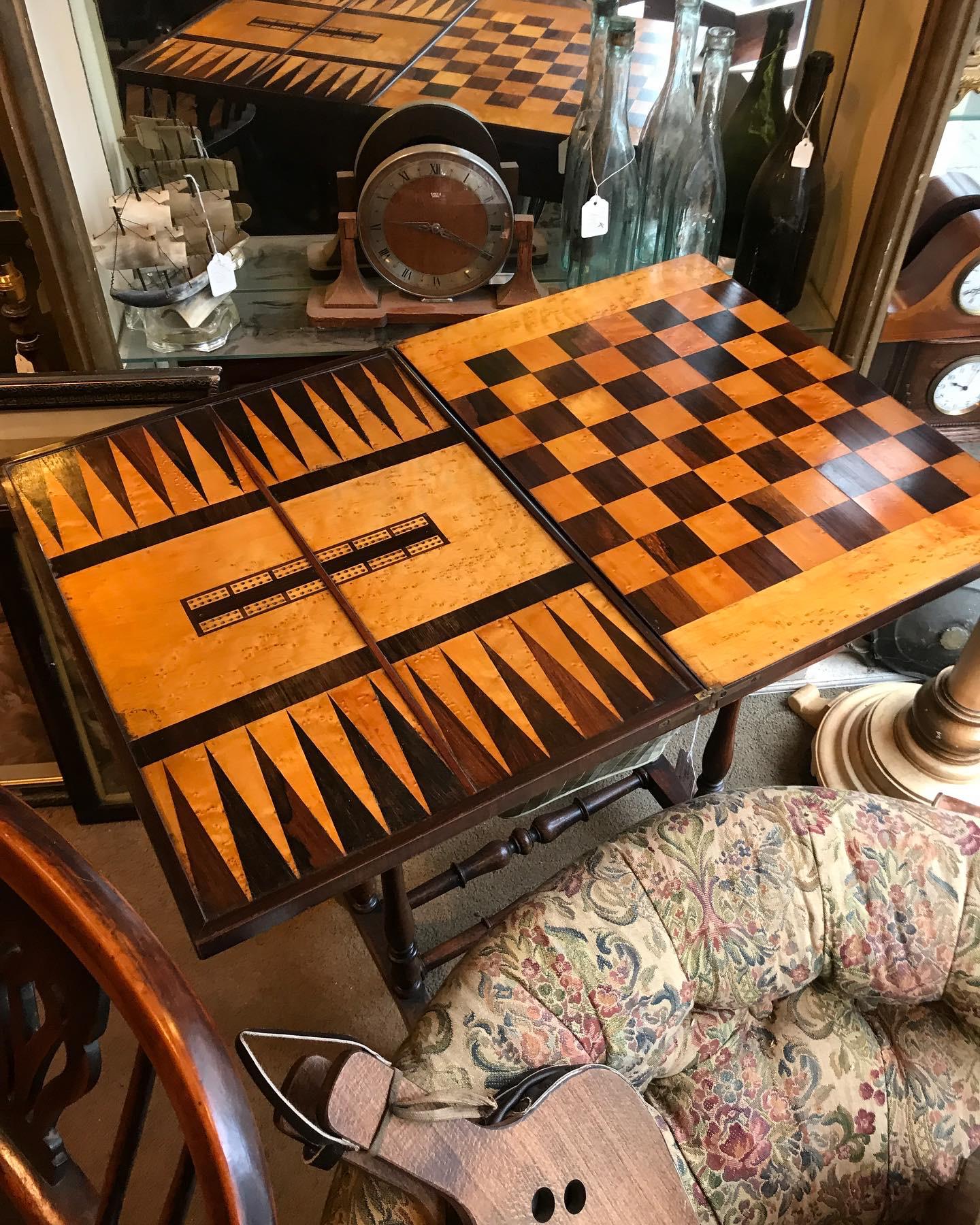 A original Victorian mahogany games / work table with chess/ draught board , backgammon , Cribbage etc with storage draw and well.