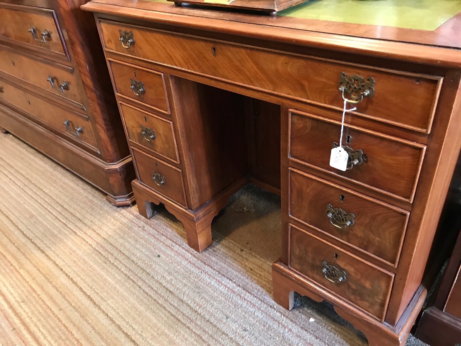Offered for sale is this 19th Century Victorian antique mahogany desk with 7 draws and a central cupboard in the kneehole.
