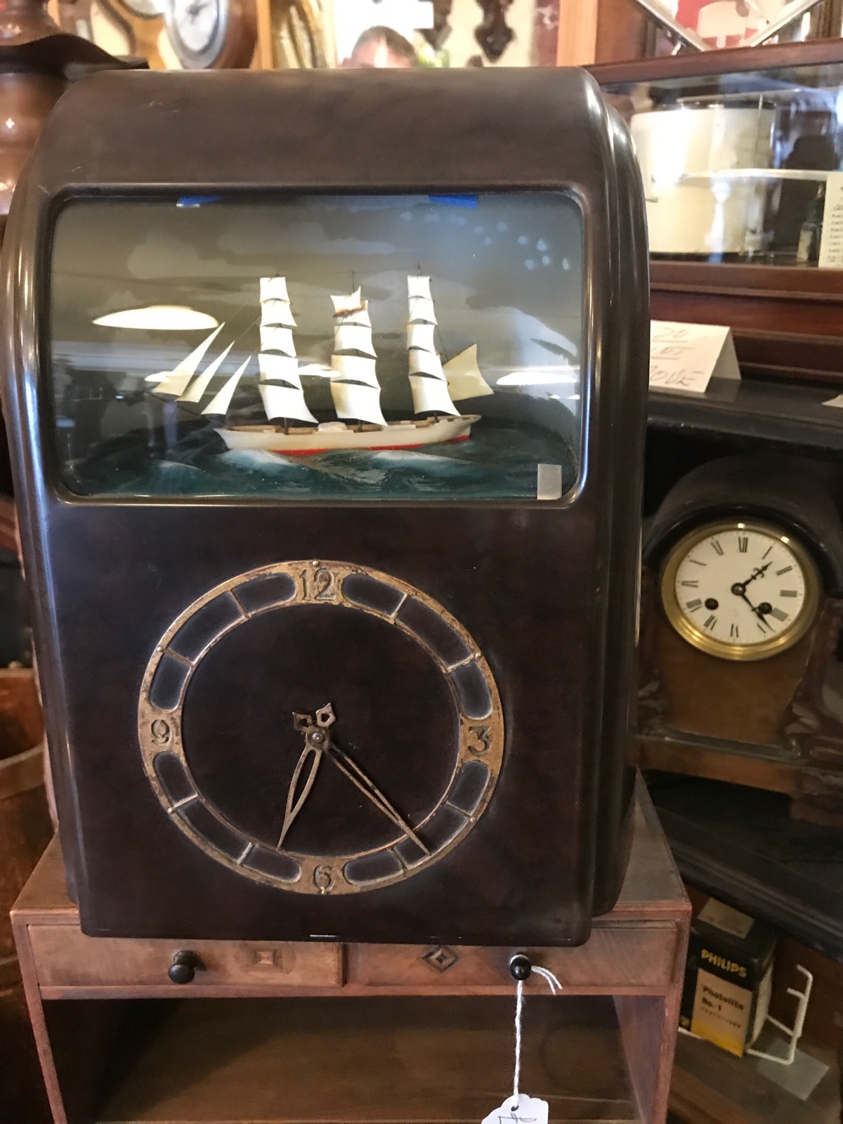 Offered for sale is this Vitascope clock with rocking ship just in sold as found and unrestored.