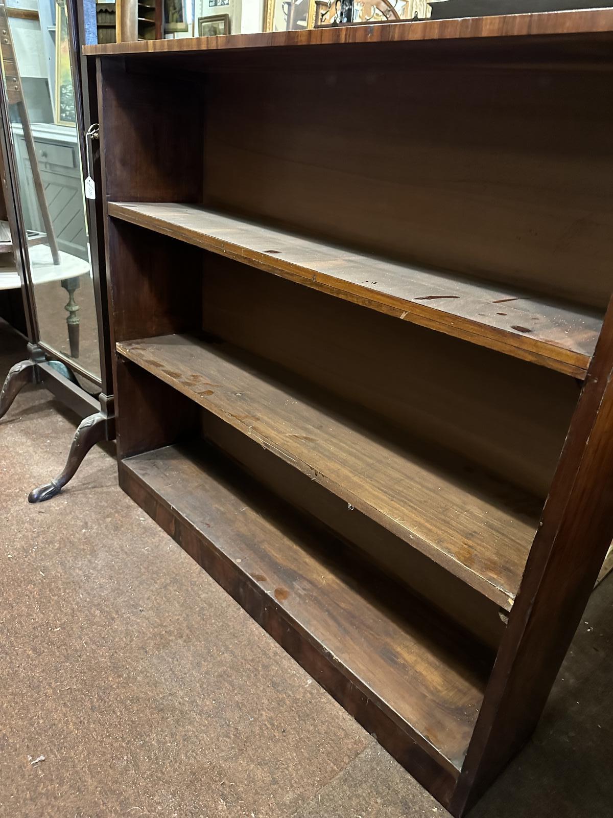 Offered for sale is this rosewood open bookcase with three shelve for different size books lovely figured rosewood finish with replacement hardboard back.